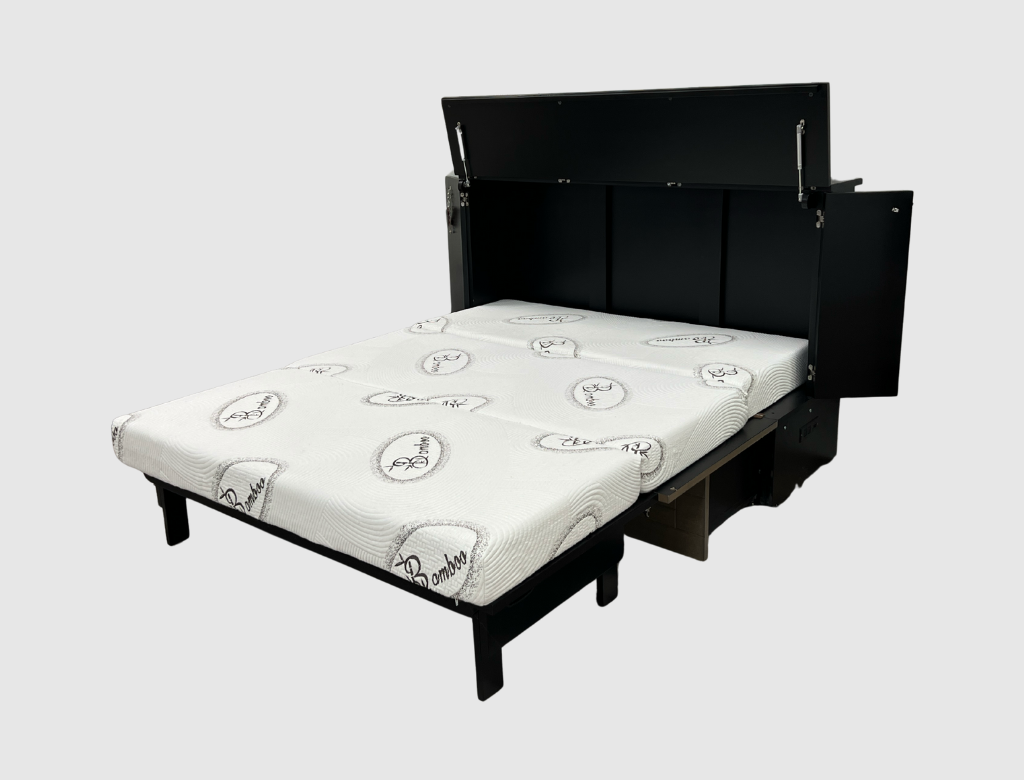 - Free-standing CabinetBed™ transforms from stylish cabinet to queen bed in 30 seconds