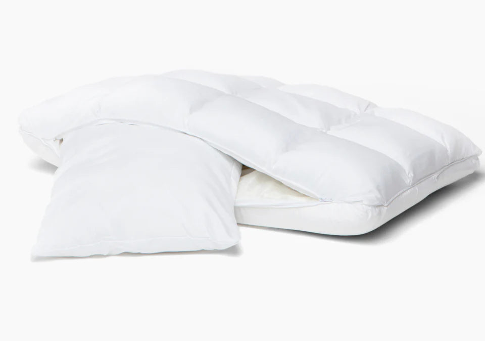 One side features a soft, lofty down