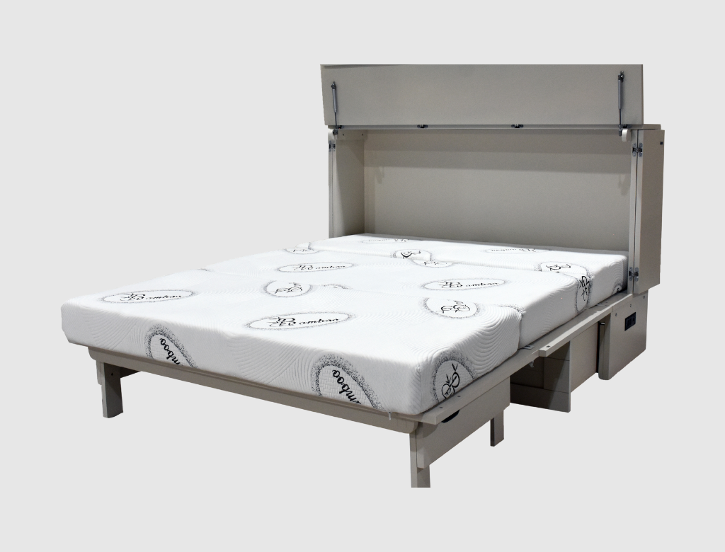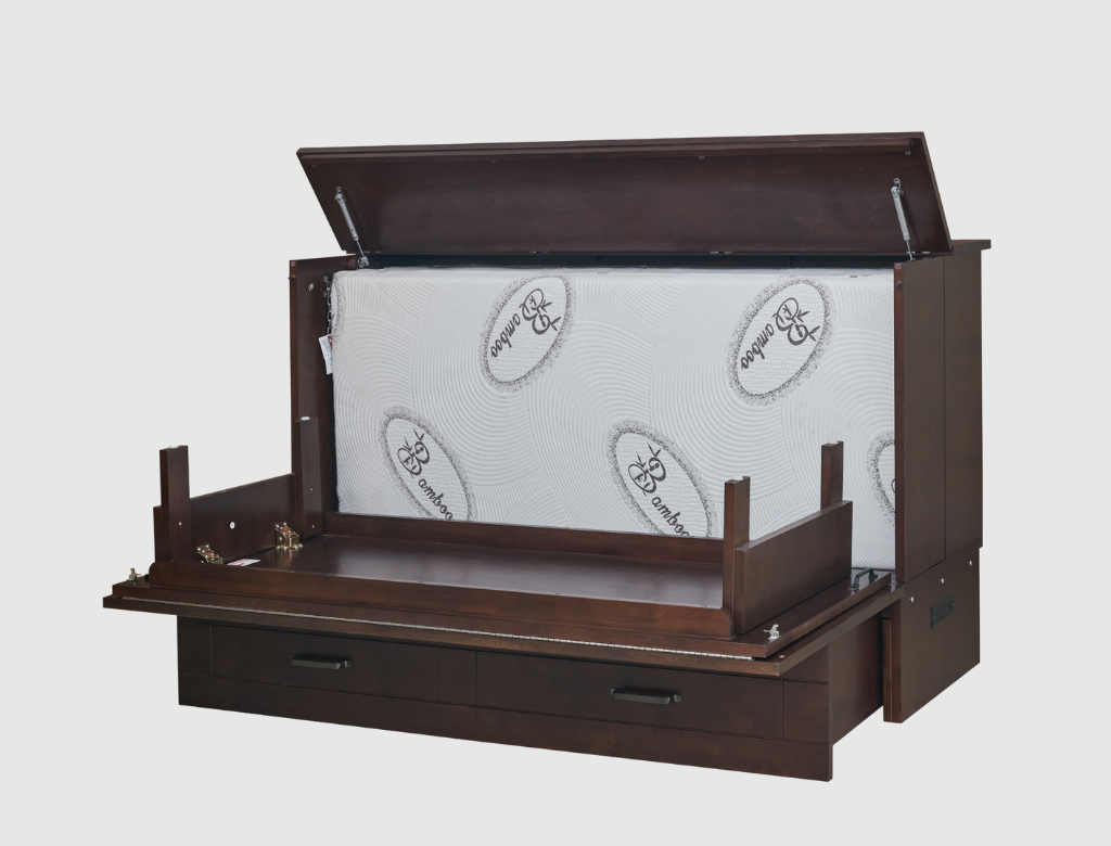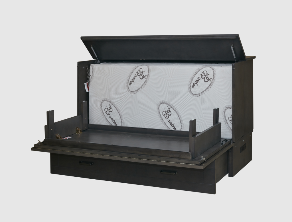 - Free-standing CabinetBed™ transforms from stylish cabinet to queen bed in 30 seconds