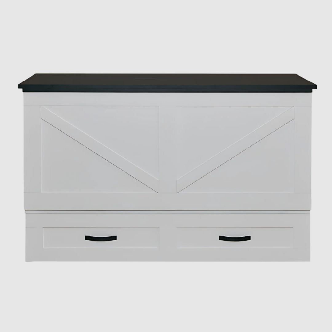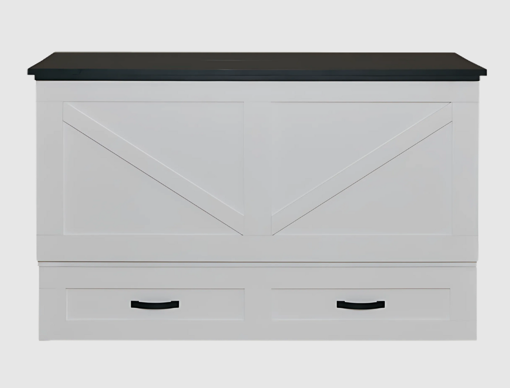 Perfect for bedrooms, guest rooms, or multipurpose spaces, the Barn CabinetBed™ combines style, storage, and comfort — featuring an integrated full-length drawer for bedding and essentials, plus a CertiPUR-US® certified mattress for safe, comfortable, and supportive sleep.