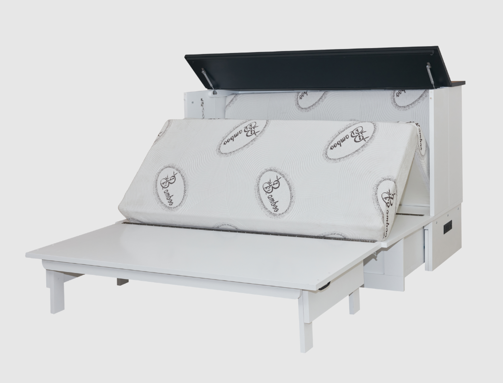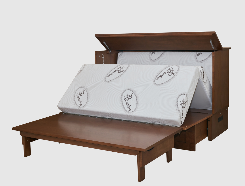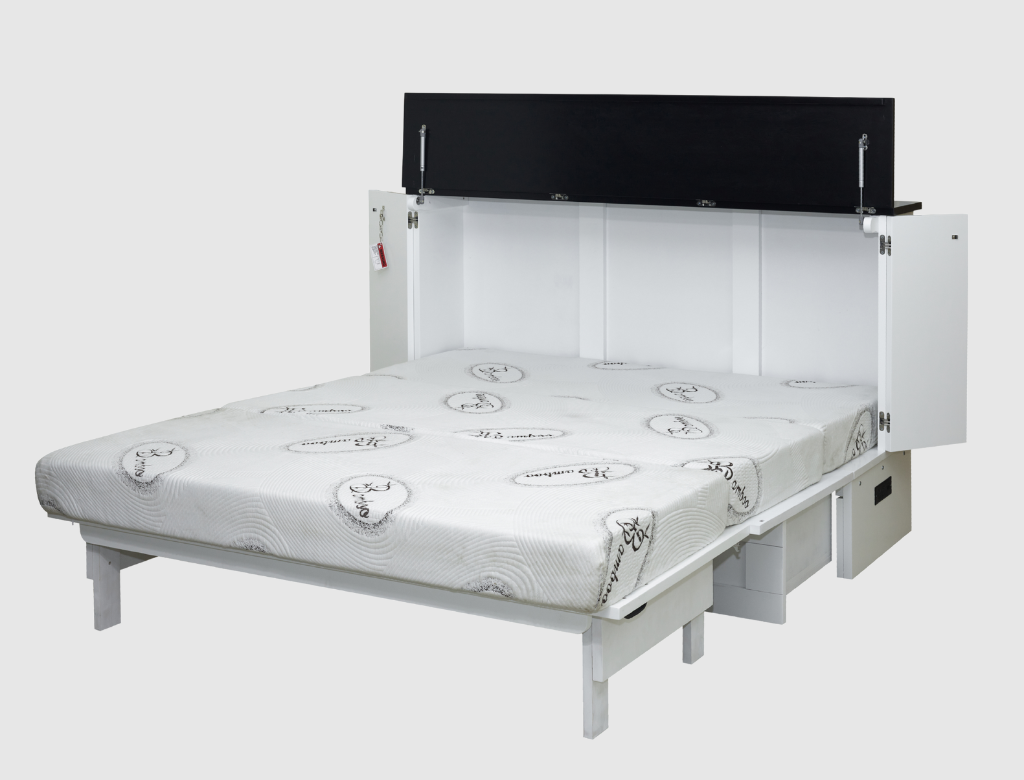 - Free-standing CabinetBed™ transforms from stylish cabinet to queen bed in 30 seconds